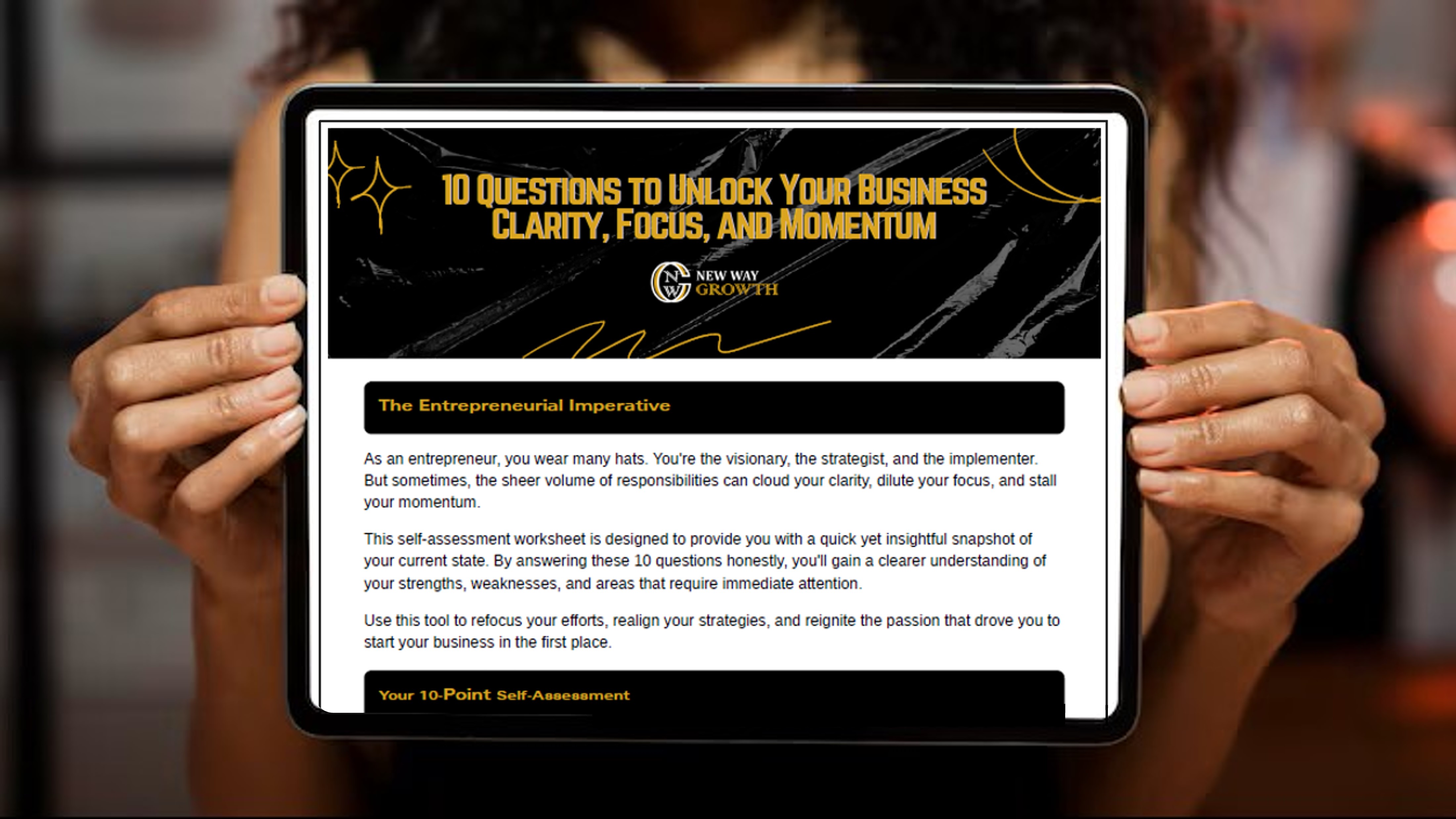 We put together this ten question worksheet for that very reason. It's called 10 Questions to Unlock Your Business Clarity Focus and Momentum. It is not some big, complicated report. It is a simple self-assessment to help you quantify that feeling of being overwhelmed. You'll rate yourself on ten key areas and then you'll see exactly which of the three big pillars—clarity focus or momentum—is your weakest link.